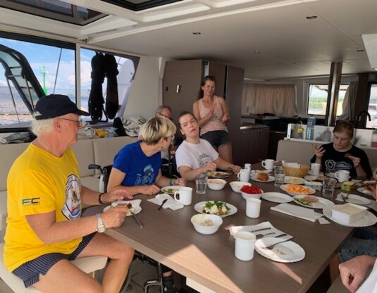 Segeln in Kroatien bei sommerlichen Temperaturen um 28°C, Sonnenbaden an Deck eines Katamarans, Schwimmen in kristallklarem Wasser, kühle Drinks auf der Terrasse einer Strandbar. Gibt es was Schöneres? Die Friedensflotte war wieder ein außergewöhnliches Erlebnis. Sogar Delphine haben uns beim Segeln lebhaft und neugierig begleitet. Das Rahmenprogramm in der Marina von Kastela war abwechslungsreich und spannend. Workshops, Grillabend, Basteln, Malen, Tanzen, Musik, Discoabend, alles dabei, was das Herz unserer TeilnehmerInnen begehrt. Ganz besonders berührend ist der Moment, wenn bei der Abfahrt alle Schiffe gleichzeitig die Segel hissen und geschlossen den Hafen verlassen.