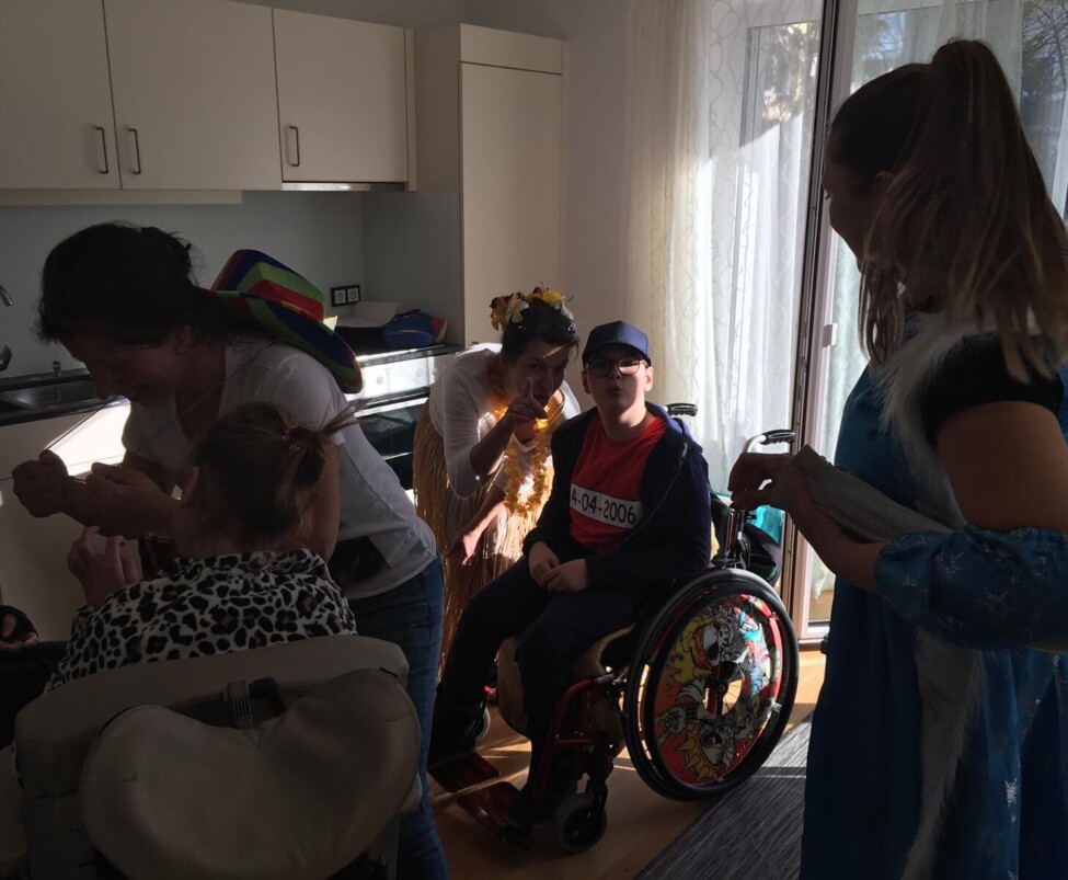 Diesmal waren wir alle sehr gespannt – unsere jüngere Rolligruppe durfte nämlich als Erstes unsere neue barrierefreie Unterkunft ausprobieren: ein barrierefreies Wohnhaus in Parsch mit Lift, supergroßen barrierefreien Bädern, großer Terrasse und Garten – fantastisch! Bei fast 20 Grad in der Sonne konnte der Garten ausgiebig getestet werden. Am Freitagabend standen selbst Pita kochen und ein Spieleabend am Programm.